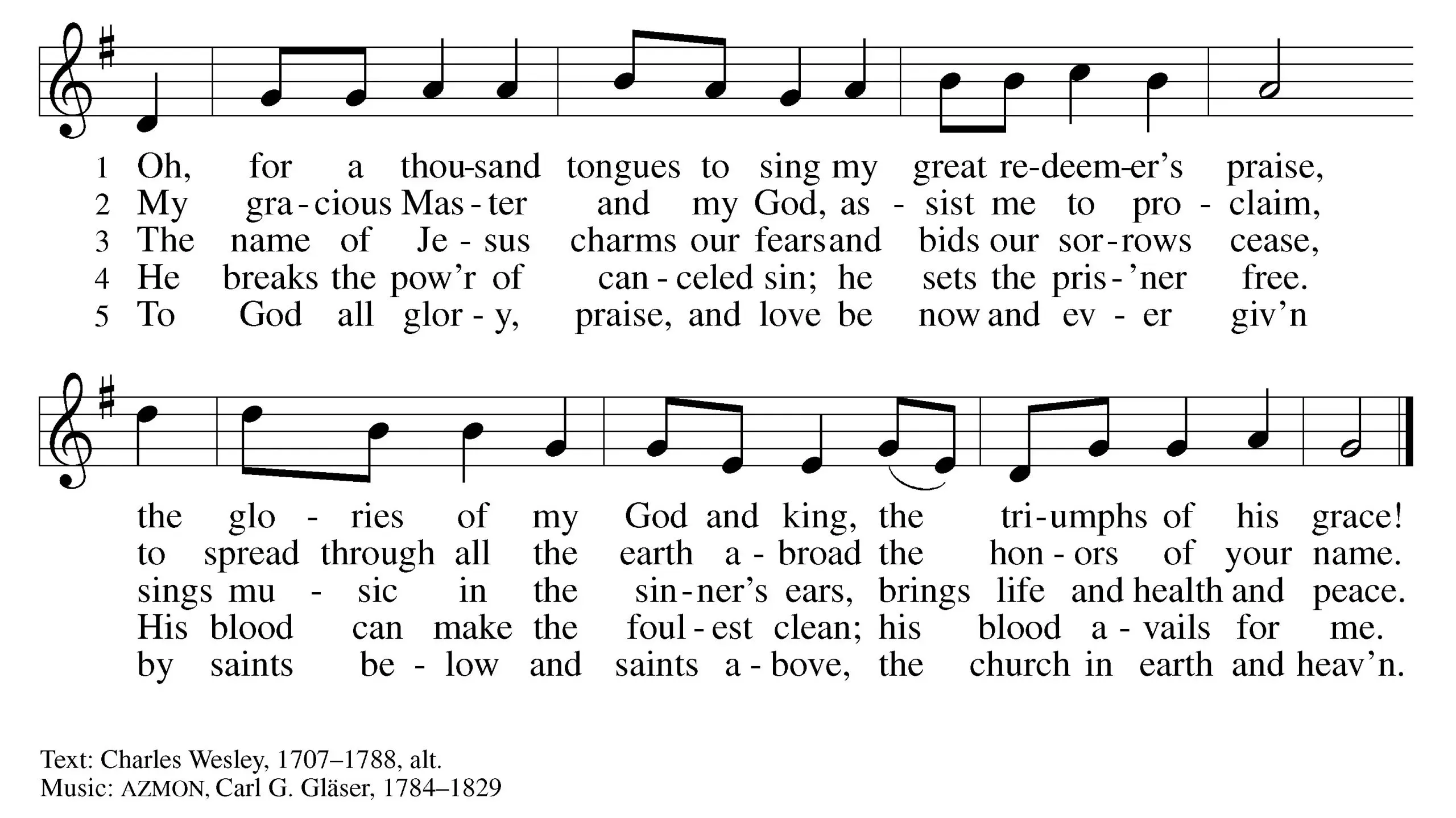 CLOSING HYMN Oh, For a Thousand Tongues to Sing vs 1,2,4,5