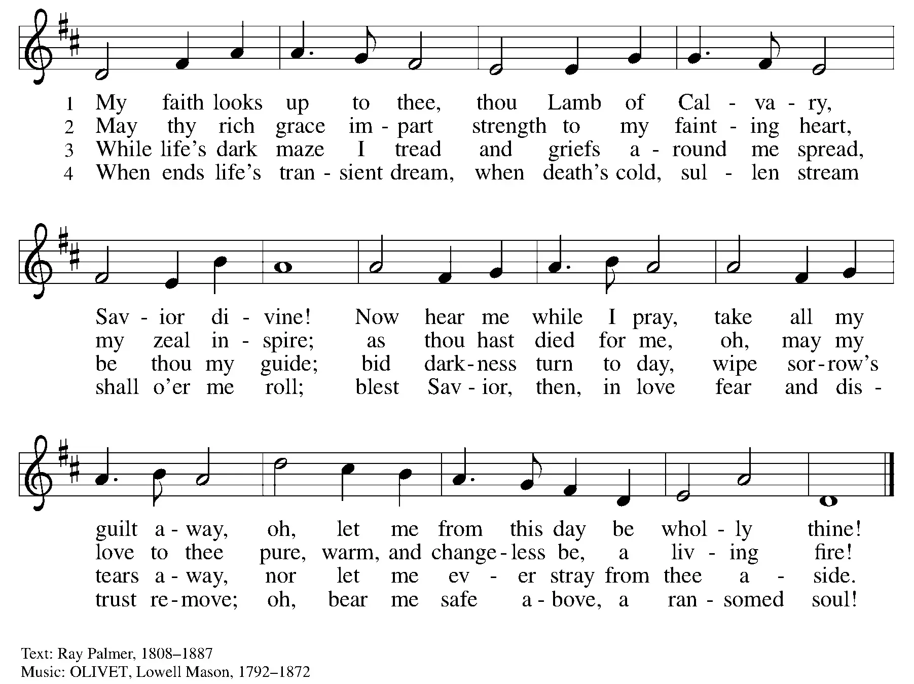 THE HYMN OF THE DAY My Faith Looks Up to Thee vs 1,3,4