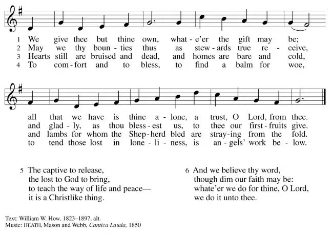 THE HYMN OF THE DAY “We Give Thee But Thine Own”